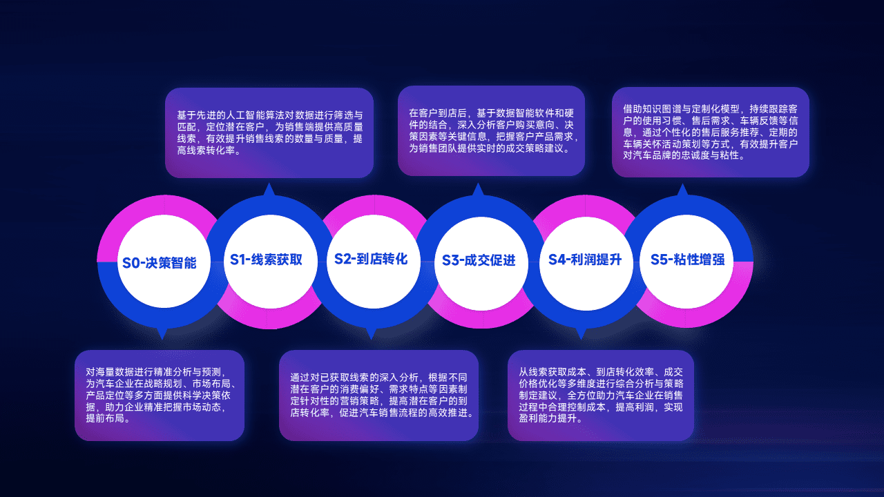通过拓宽潜在客户来源、、优化线索分配并提高到店转化率,,以增强销售效率。。同时,,,,利用线索数据不断优化分析模型,,,有效提升转化率,,,,扩大营销影响力。。